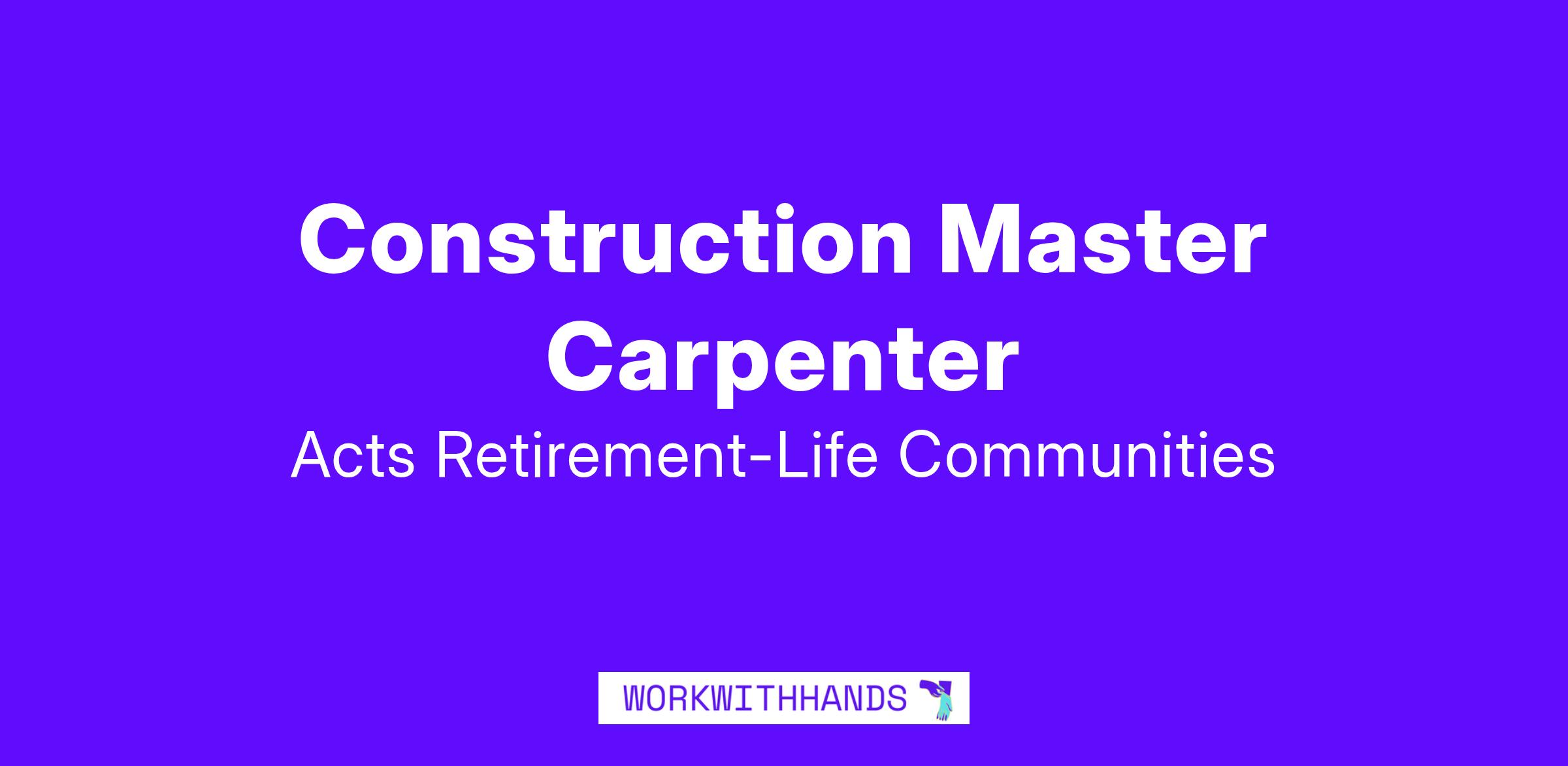 Acts Acquisition & Development Company is currently seeking qualified candidates for our Construction Master Carpenter position.