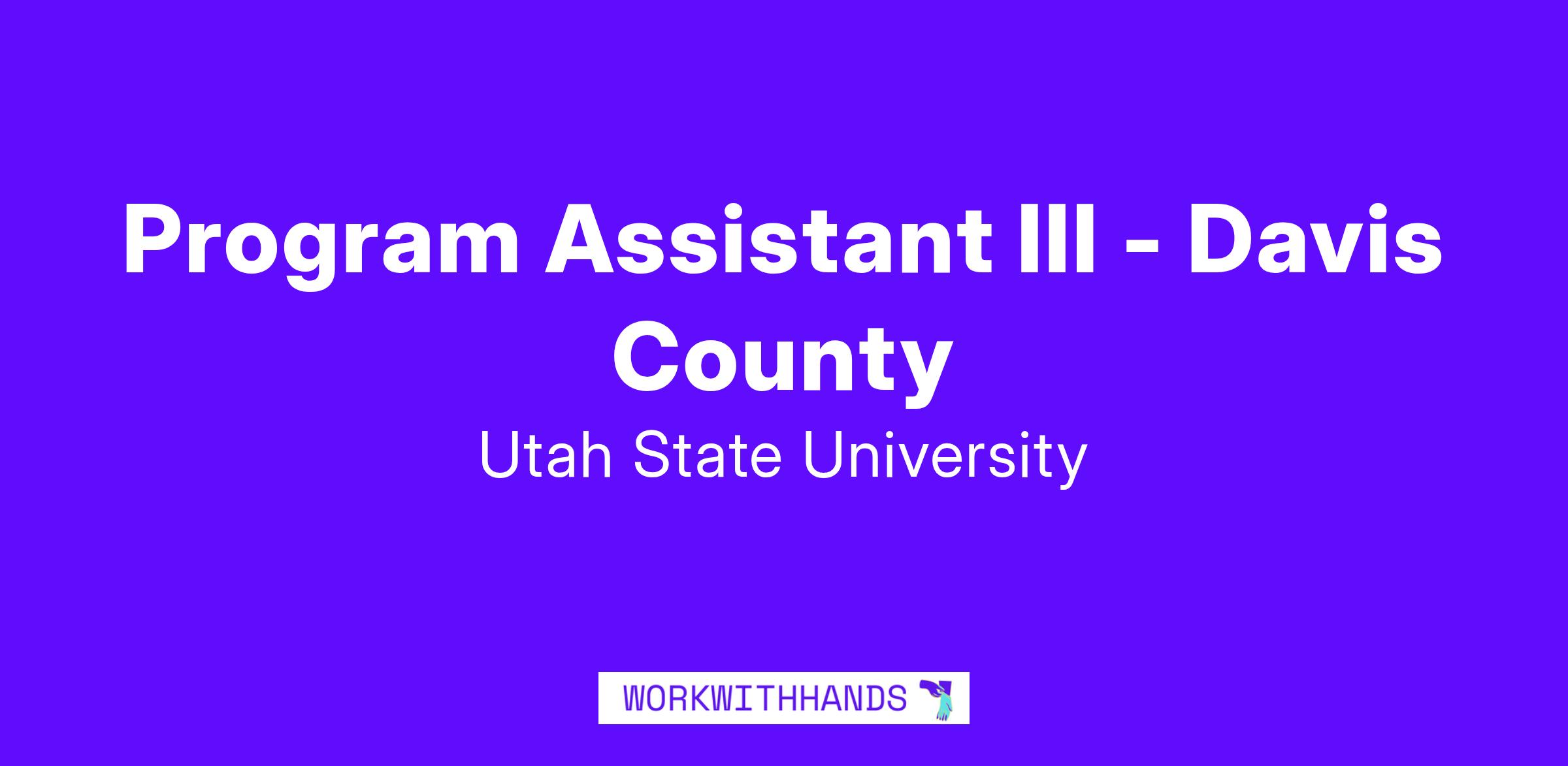 Utah State University Extension Davis County is seeking an assistant (Program Assistant III) for the 4-H, Equine Assisted Services, and Davis Agricultural Heritage Center programs. This is an in-office position that works with other departments and administrative assistants in a team approach to accomplishing common goals. This position reports to the County Director and is supervised by the 4-H Program Coordinator.